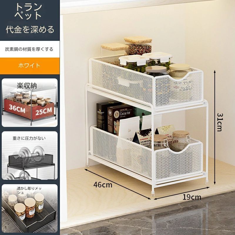 大容量 ガラージ オフィス シンク下を ホワイト ブラック [2段]長さ19幅36高さ31 [2段]長さ19幅46高さ31 [2段]長さ25幅36高さ31 [2段]長さ25幅46高さ31 [3段]長さ19幅36高さ53 [3段]長さ19幅46高さ53 [3段]長さ25幅36高さ53 [3段]長さ25幅46高さ53