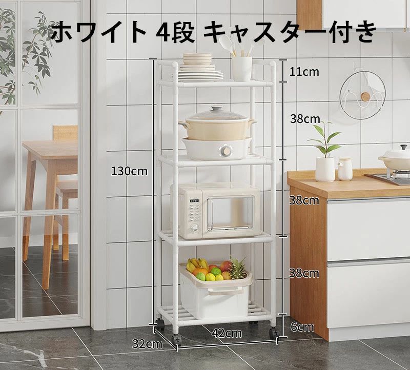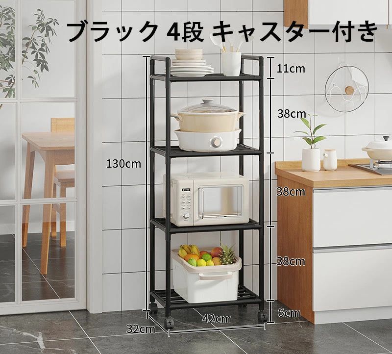 5段 キッチン フライパンラック キッ ホワイト ブラック 3段 42*32*96cm 4段 42*32*130cm 5段 42*32*152cm 6段 42*32*166cm