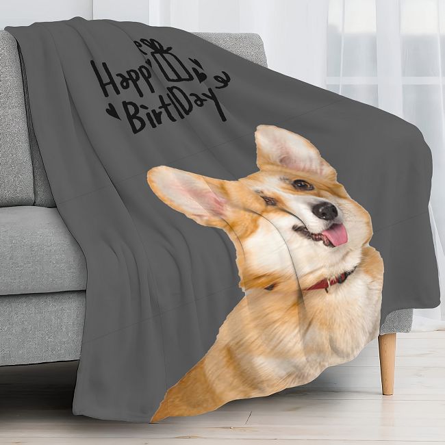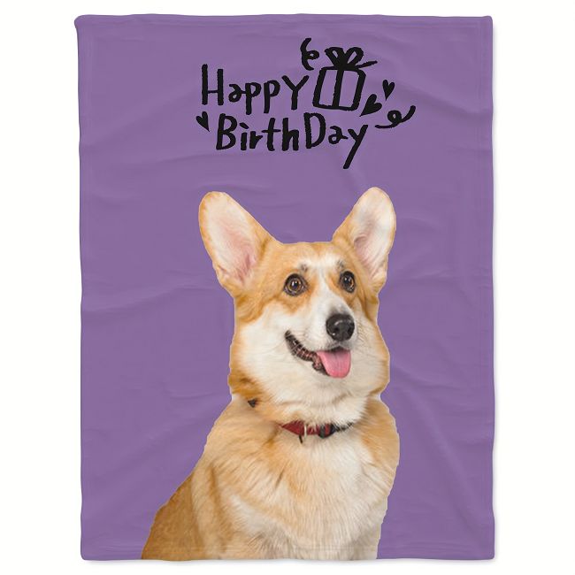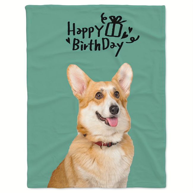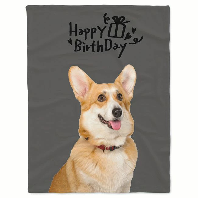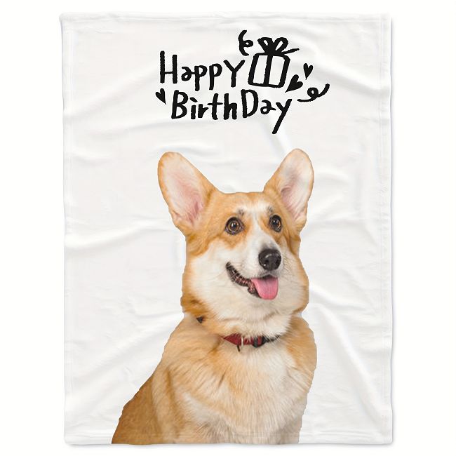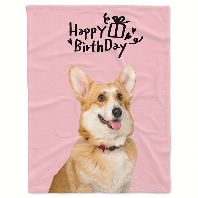 犬の写真入り プレミアムフリースブランケット 寝室用/車用