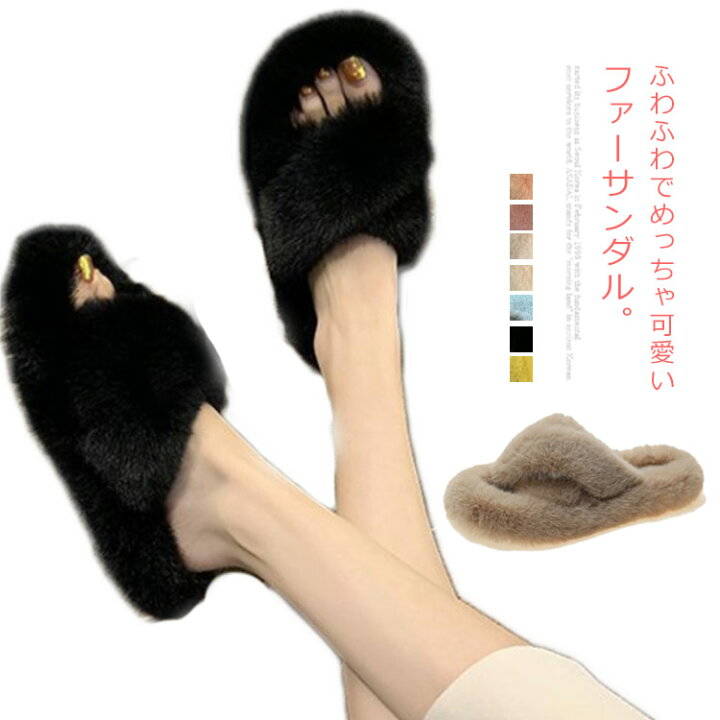 ファーサンダル ミュール スリッパ サ レディース靴 ミュール 通販 イエロー ブラック ブルー ベージュ オフホワイト オレンジ 35 36 37 38 39 40