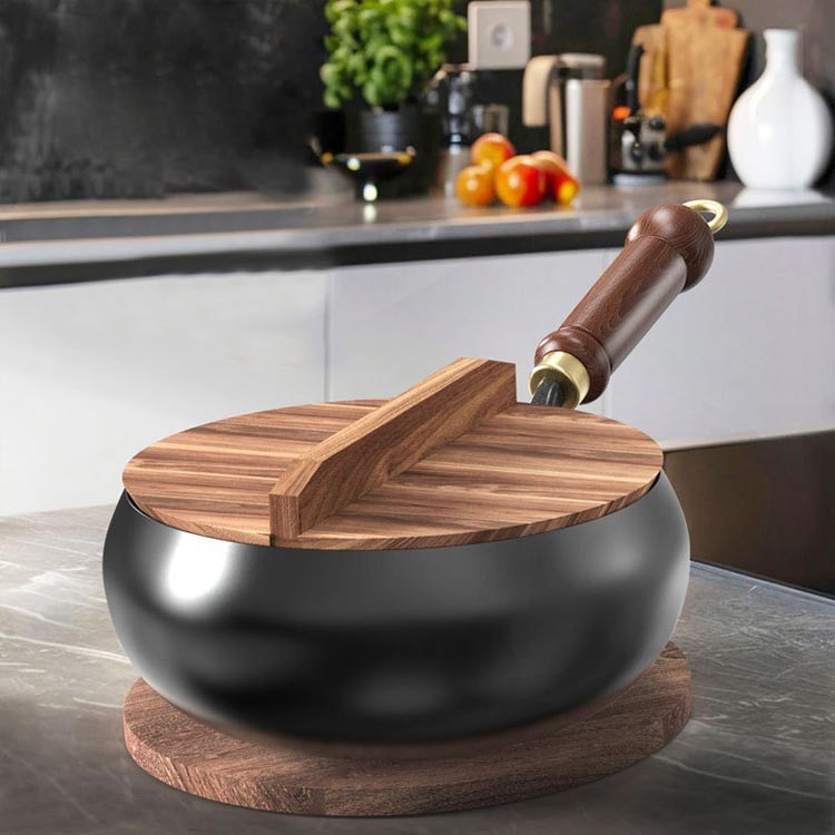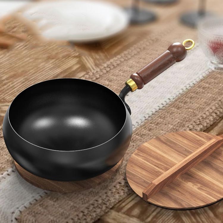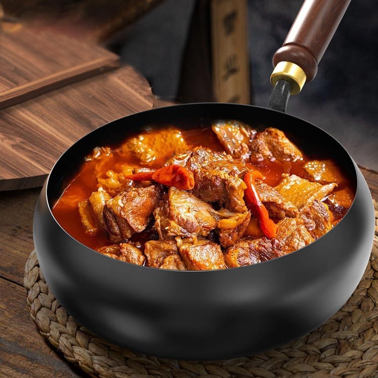 【優れた耐久性】絶妙な鉄素材は、耐摩耗性に優れているだけでなく、調理にも耐え、耐用年数が長い。丸い構造設計は効果的に熱を伝達し、調理効率を高めることができる。木製のハンドルの抗焦げ設計により 安全で便利な調理体験をもたらします。
