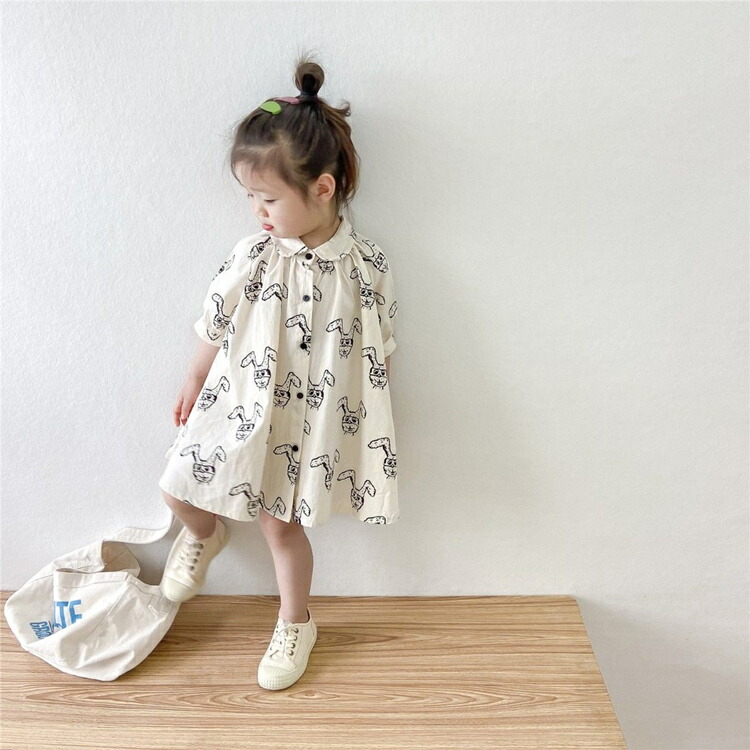 キャッチコピー:涼しげで可愛い女の子用シャツワンピース!柔らかな綿混素材で快適な着心地、韓国風のオシャレなデザイン。襟付きで夏のお出かけにもぴったり。80~130サイズ対応!