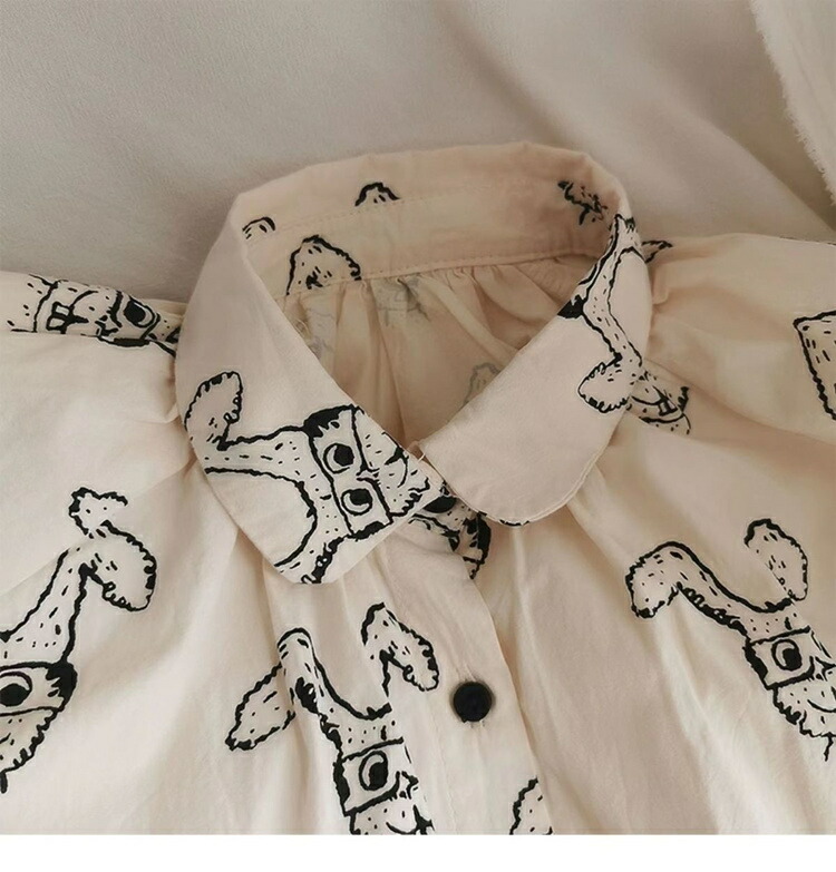 ゆったりとしたシルエットで、動きやすさも抜群。総柄デザインと襟付きが、オシャレなアクセントに!シンプルでありながら、どこか華やかさも感じさせるデザインで、お出かけや普段着にぴったり。どんなコーディネートにも合わせやすく、ガールズファッションを楽しめます。