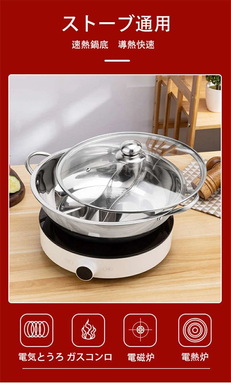 仕切り鍋 IH対応 二食鍋 火鍋 2食 28cm 30cm 32cm 34cm 36cm 38cm