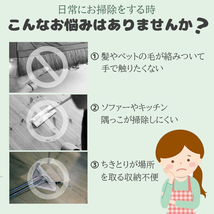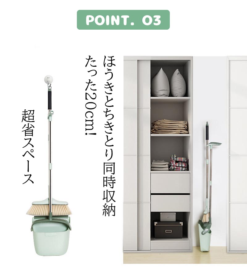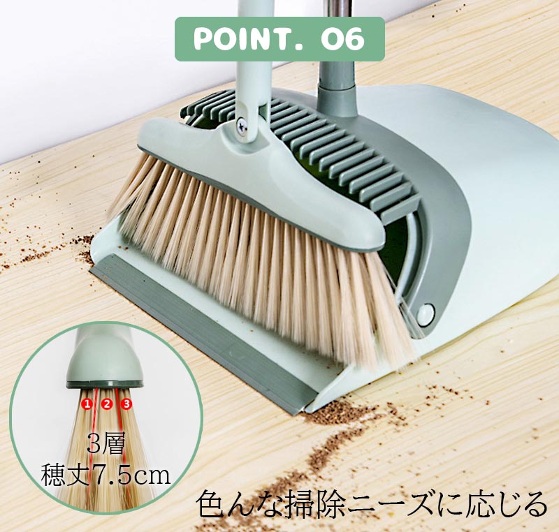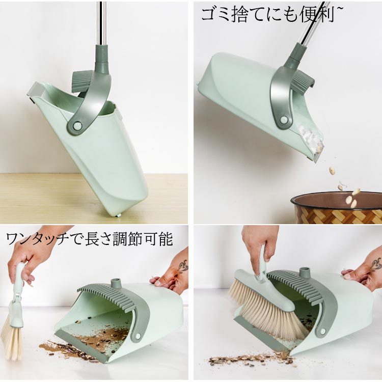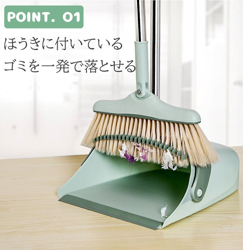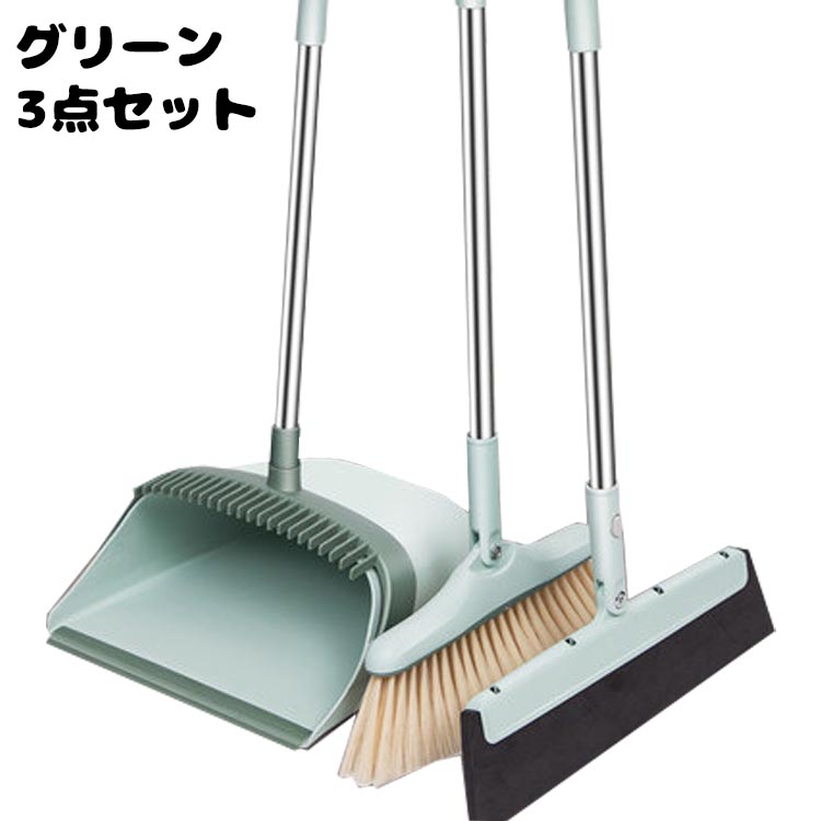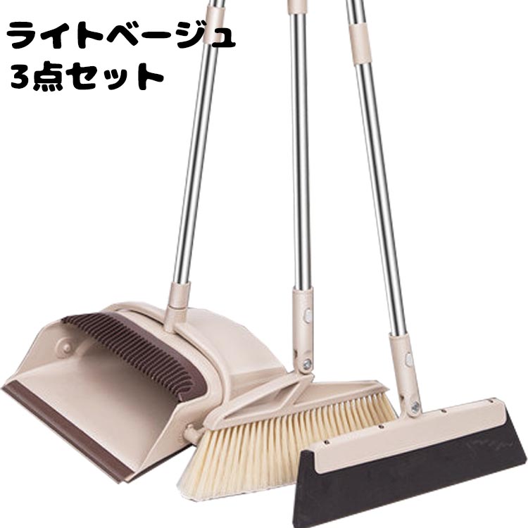 ほうき ちりとり 3点セット 自立式 日用品雑貨 文房具 手芸 続々登場 ライトベージュ・3点セット グリーン・3点セット