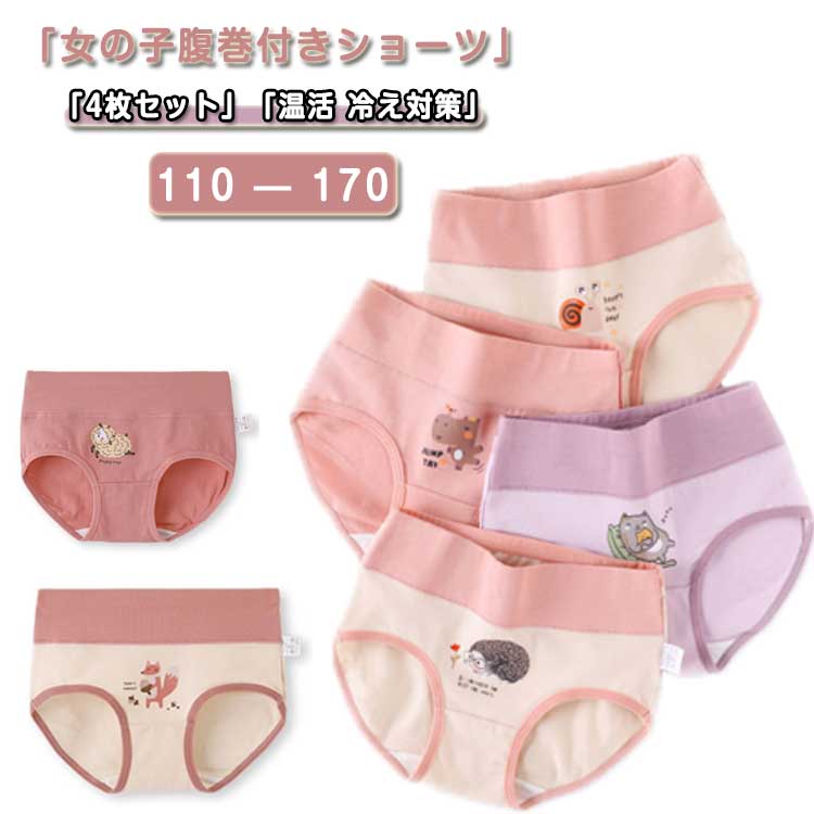 4枚セット 女の子 腹巻ショーツ 綿 キッズ 下着 パジャマ ショーツ 豊富 4枚組A 4枚組B 4枚組C 110 120 130 140 150 160 170