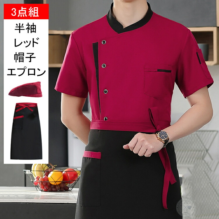 コックコート 薄手 半袖 長袖 男女兼 半袖+白 半袖+黒 半袖+レッド 長袖+白 長袖+黒 長袖+レッド 半袖+白+エプロン 半袖+黒+エプロン 半袖+レッド+エプロン 長袖+白+エプロン 長袖+黒+エプロン 長袖+レッド+エプロン 半袖+白+帽子+エプロン 半袖+黒+帽子+エプロン 半袖+レッド+帽子+エプロン 長袖+白+帽子+エプロン 長袖+黒+帽子+エプロン 長袖+レッド+帽子+エプロン M L XL 2XL 3XL 4XL
