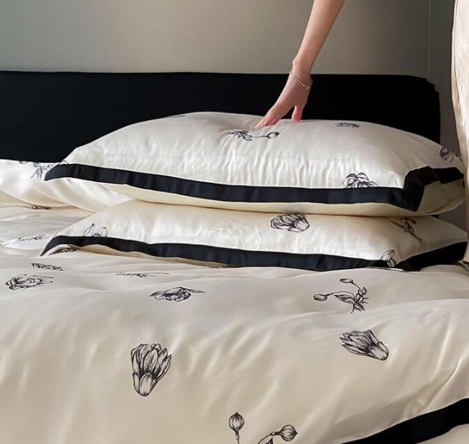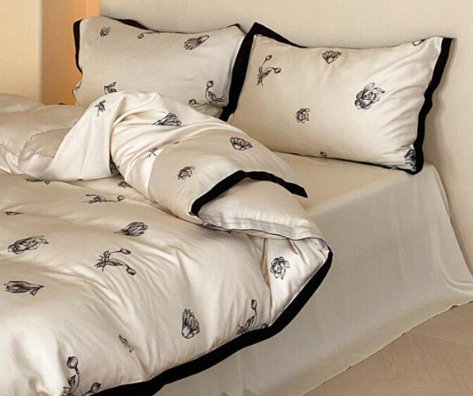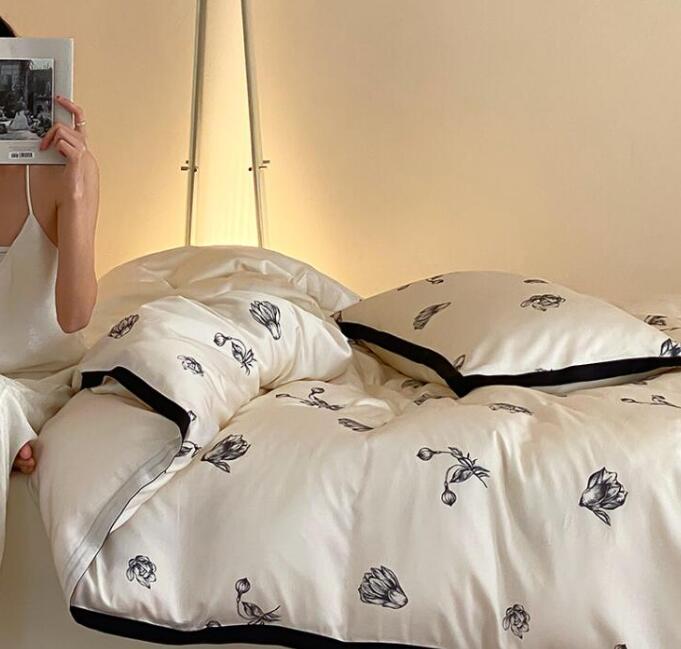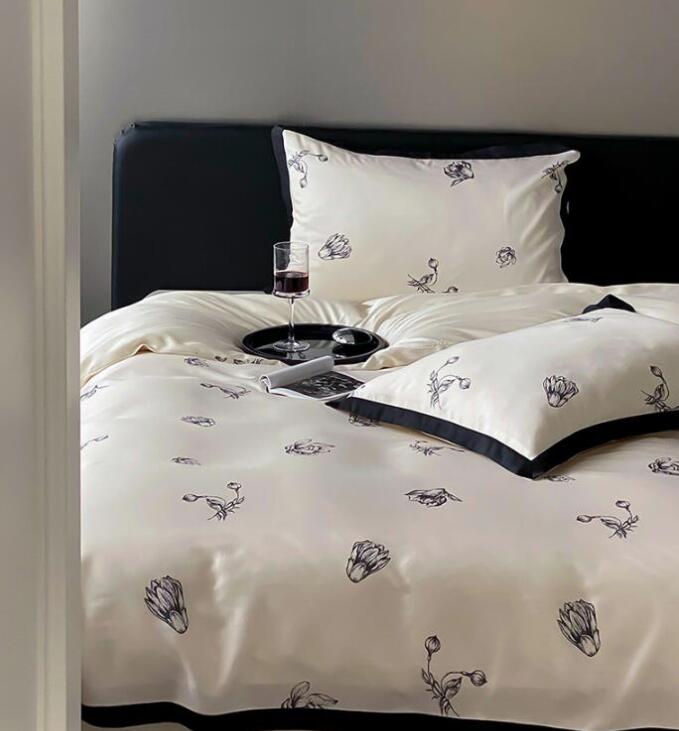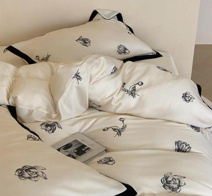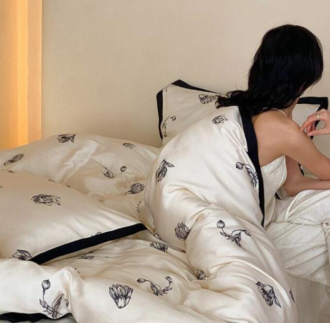 布団カバーセット 4点セット 和風 涼感 ツルツル ダブル クイーン 花柄 柔らかい 肌に優しい 可愛い ボックスシーツ フラットシーツ 掛け布団カバー 枕カバー 通気性 速乾 防ダニ 寝心地が良い