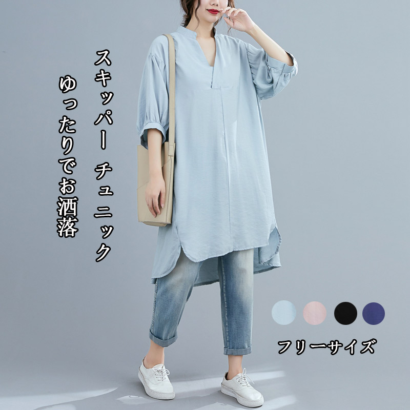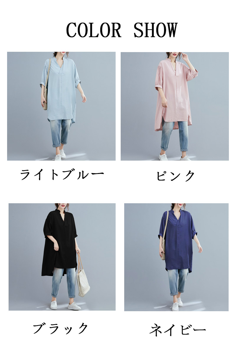 ロングシャツ レディース チュニック チュニック 続々入荷中 ライトブルー ピンク ブラック ネイビー