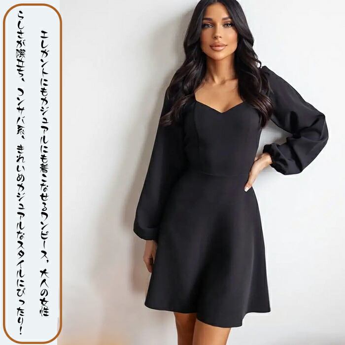ワンピースレディース ミニドレス Aライン フリル パフスリーブ チュニック シャーリング 着瘦せ 薄手 柔らかい キャミワンピ ファッション かわいい 体型カバー 軽量 ドレス S-2XL きれいめ