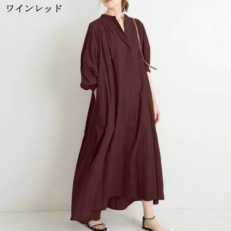 シャツワンピース ワンピース 長袖 レ ブラック ベージュ ワインレッド M L XL 2XL