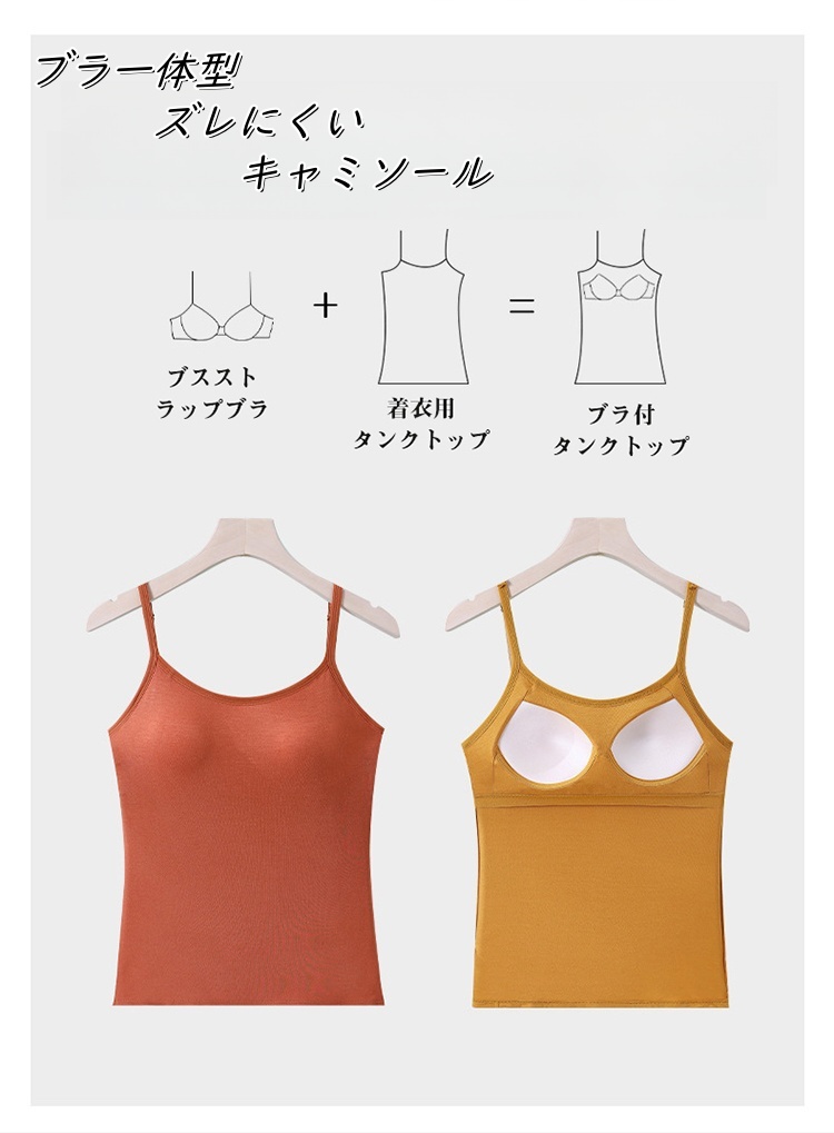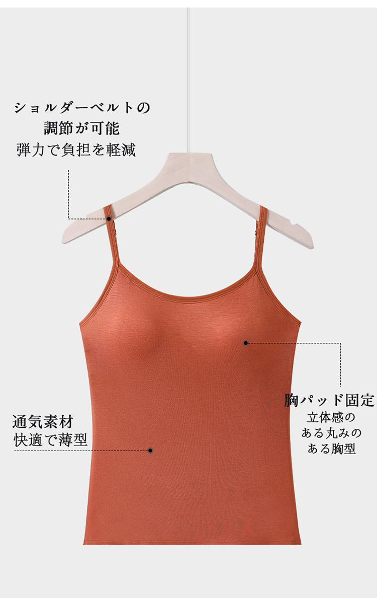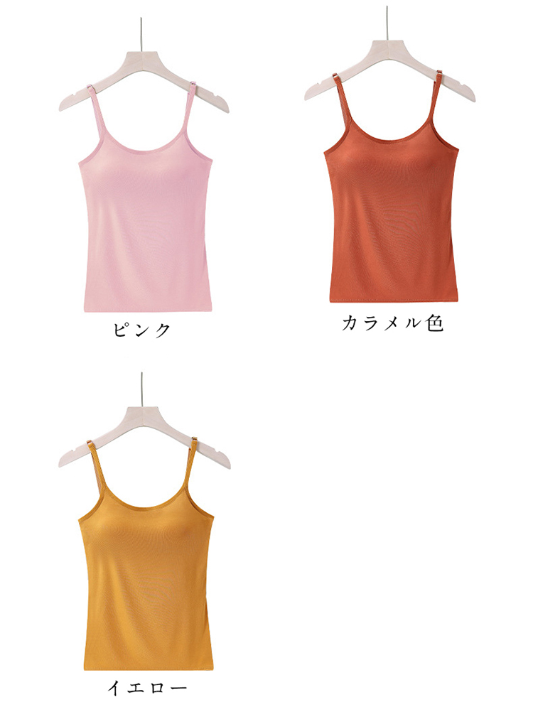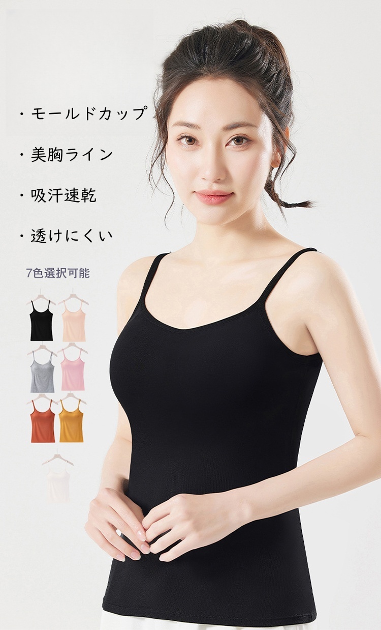 レディース キャミソール カップ付き インナー ブラジャー不要 モールドカップ 美胸ライン 吸汗速乾 薄手 透けにくい 肌触り 肩紐調節 フィット感 綿混素材 大きいサイズ