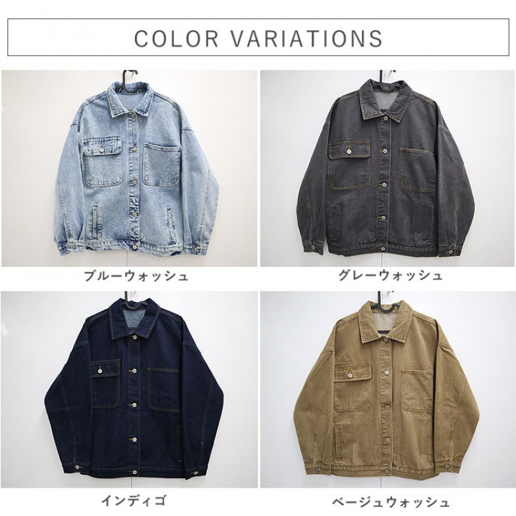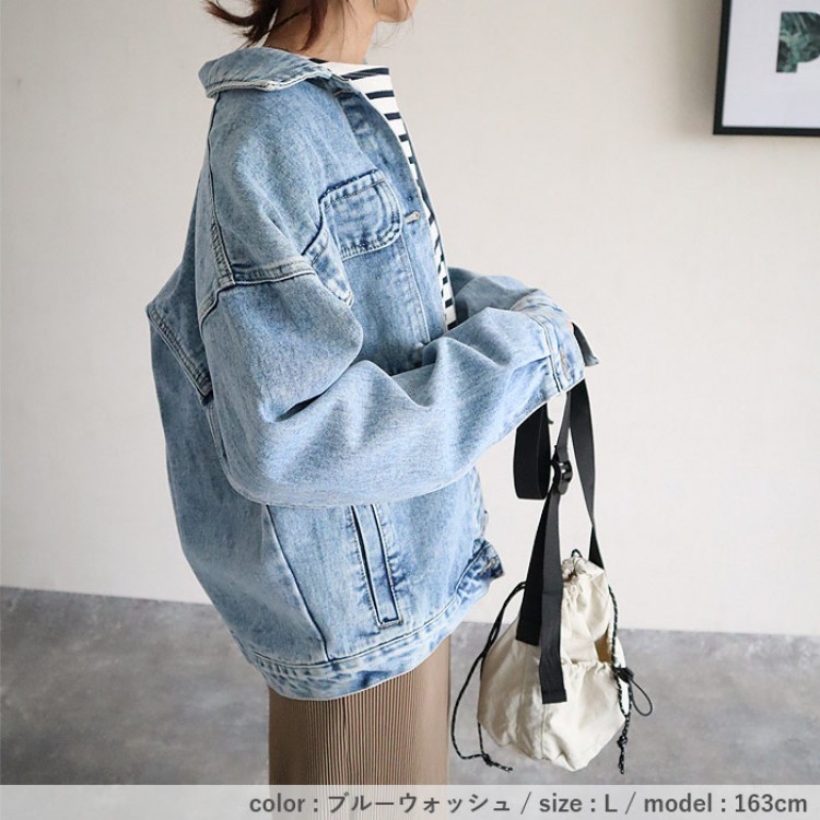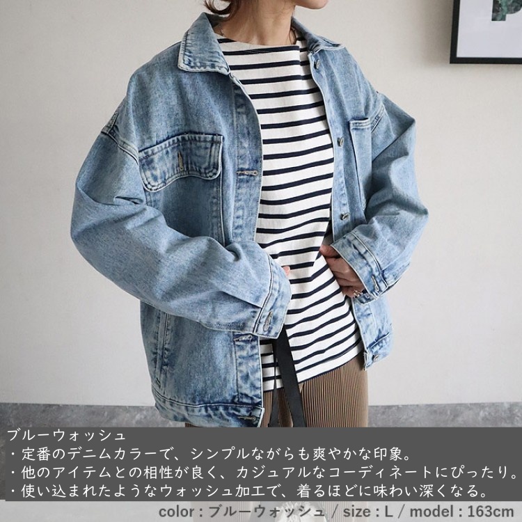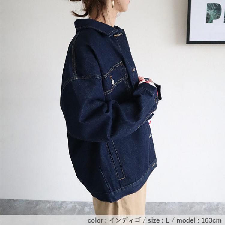 オーバーサイズジャケット デニムジャケット レディース Gジャン ボリュームスリーブ ぽわん袖 カジュアルアウター インディゴブルー 秋冬 デニムジャケット 体型カバー 着やせ 春夏秋冬 大きいサイズ コットン ポリエステル ジャケット S M L XL ファッションコーデ