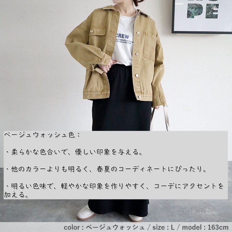 ゆったりとしたオーバーサイズのデニムジャケット。ぽわん袖とボリュームスリーブが特徴的で、カジュアルでありながらも個性的なスタイルを演出します。インディゴブルーの色合いが魅力的で、どんなコーディネートにもぴったり。コットンとポリエステルをブレンドした素材で、軽くて着心地も抜群です。透け感なしで安心して着用でき、春から冬までシーズンを問わず活躍します。体型カバー効果もあり、着やせ効果が期待できます。S、M、L、XLの4サイズ展開で、幅広い体型に対応可能です。