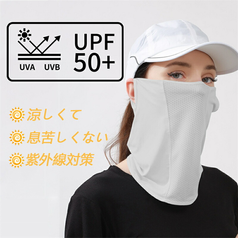 UVカット フェイスカバー マスク 冷 ピンク ライトグレー ダークグレー ベージュ ホワイト ブラック