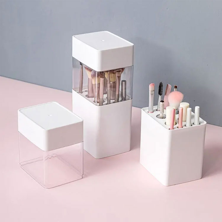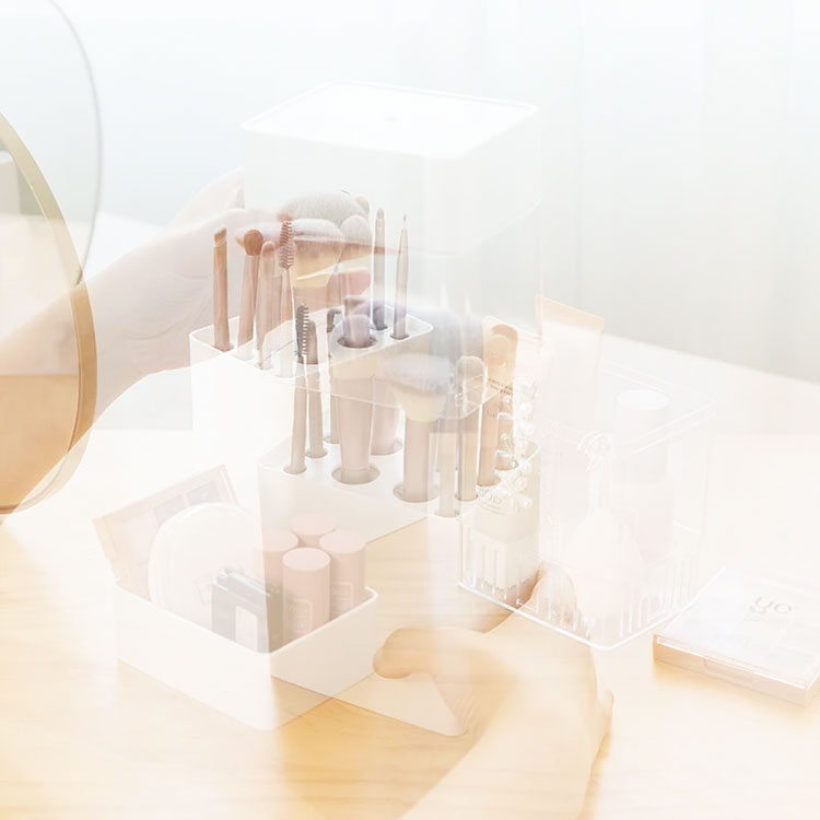 メイクブラシケース メイクブラシボック ホワイト ピンク