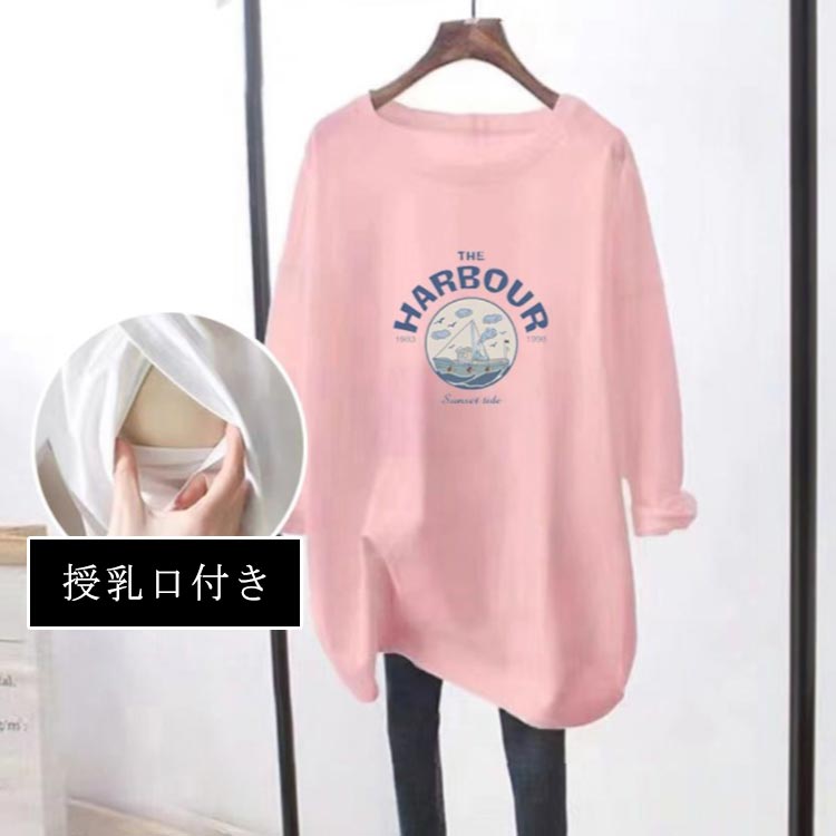 授乳口付き 長袖Tシャツ マタニティ キッズ ベビー マタニティ 豊富 ホワイト ピンク パープル ブラック グレー M L XL 2XL 3XL