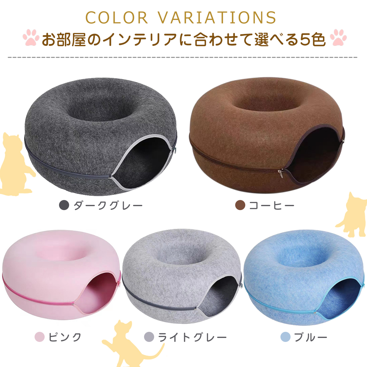 猫ハウス ドーム型 キャットトンネル フエルト製 キャットハウス ドーナツ ペットベッド ドームベッド キャットベッド 取り外し可能 お手入れ簡単 ペット 猫用品 猫トンネル 猫犬小動物用 小型犬 猫遊宅 ストレス発散 ペットのおもちゃ