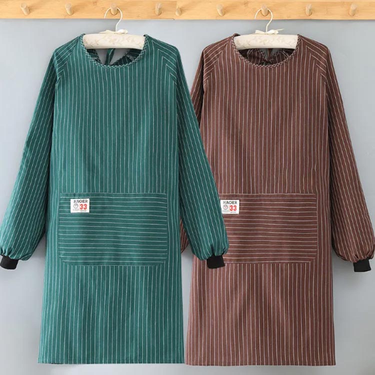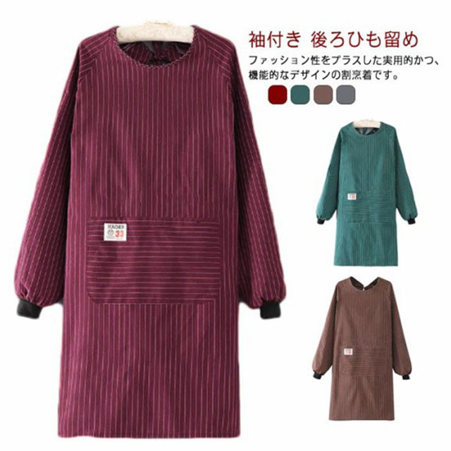 割烹着 おしゃれ エプロン 袖付き 後 キッチン用品 食器 調理器具 期間限定割引クーポン グレー ブラウン レッド グリーン