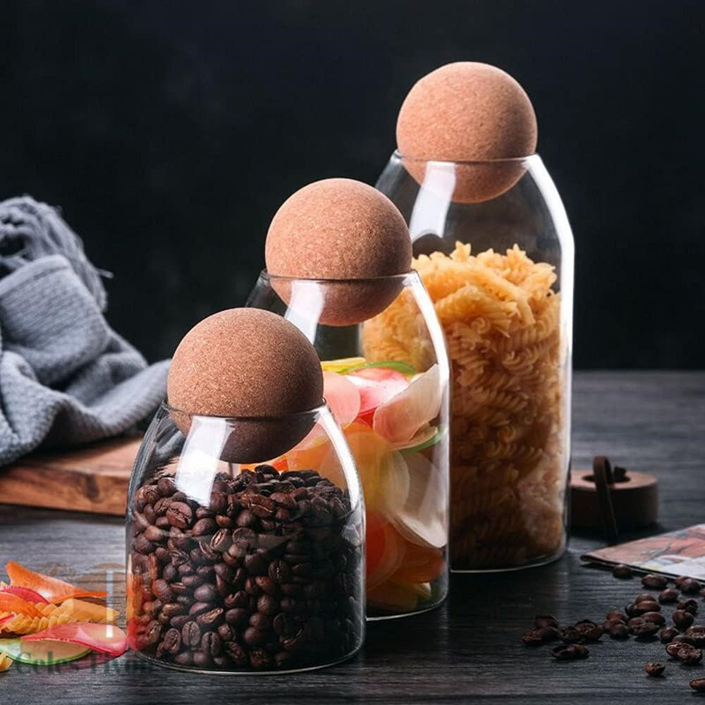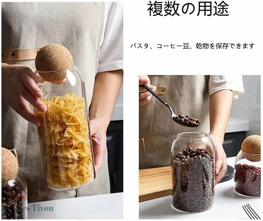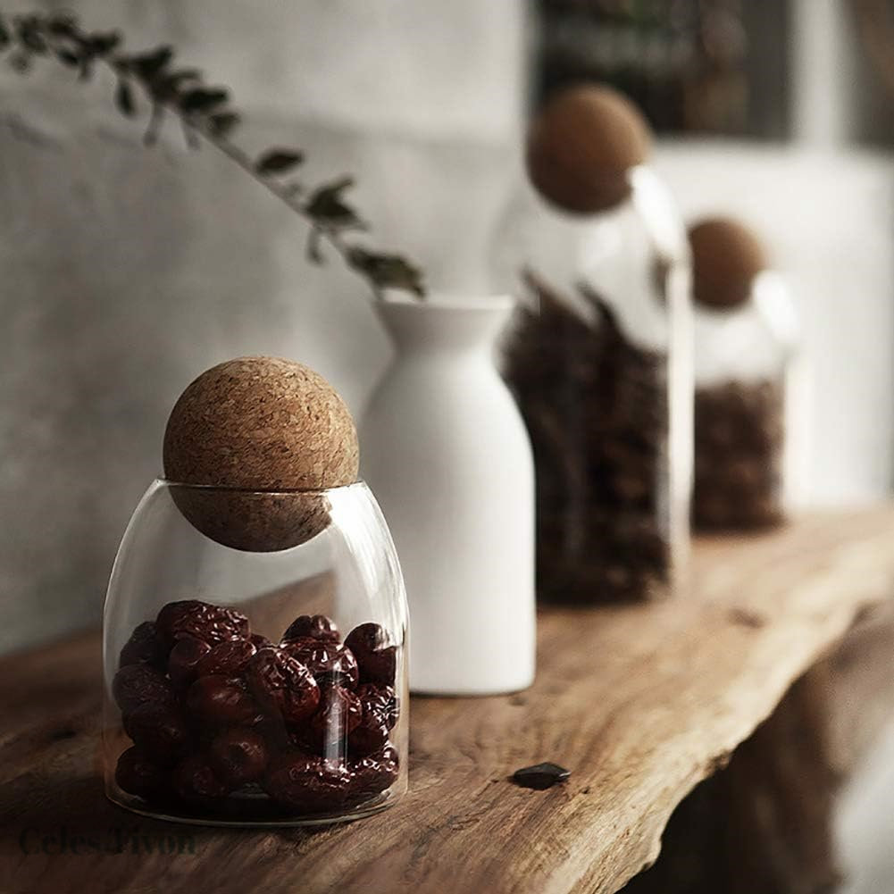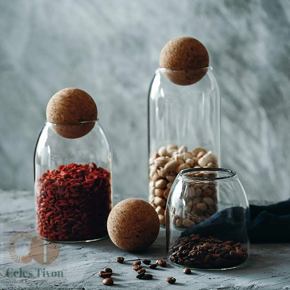 ガラス保存容器 ボールコルク付き 木蓋 キッチン用品 食器 調理器具 続々登場 透明550ml【90×100mm】 透明900ml【90×150mm】 透明1100ml【90×200mm】