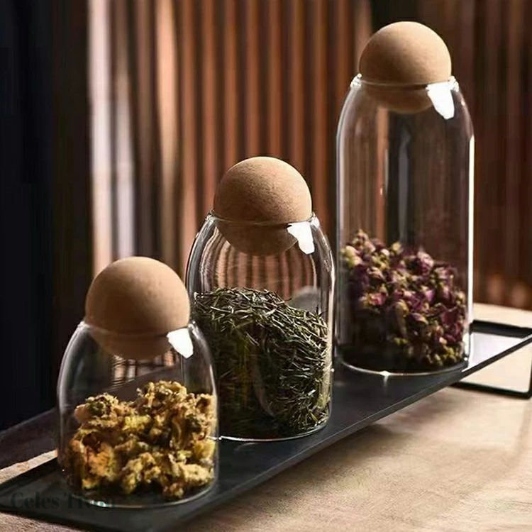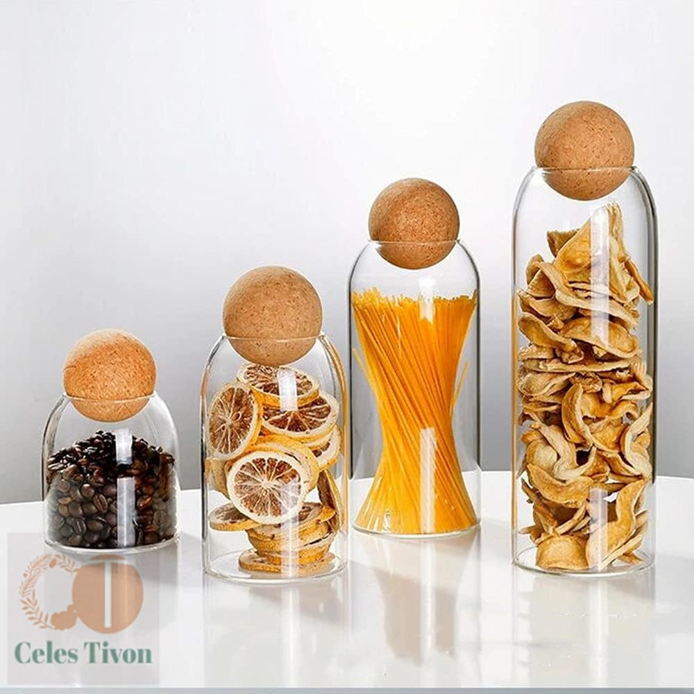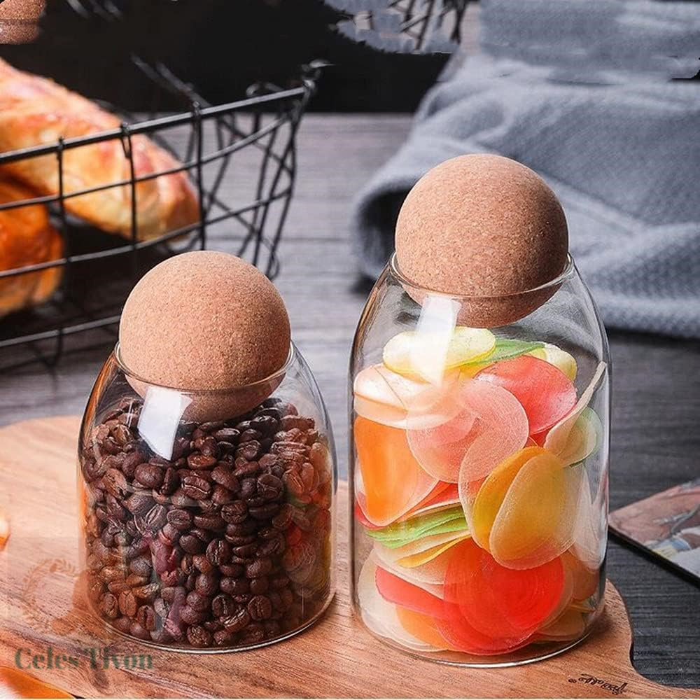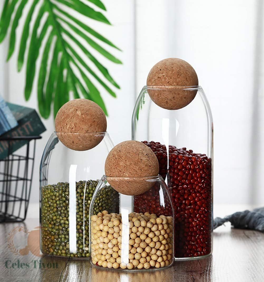 ガラス保存容器 ボールコルク付き 木蓋 キッチン用品 食器 調理器具 続々登場 透明550ml【90×100mm】 透明900ml【90×150mm】 透明1100ml【90×200mm】