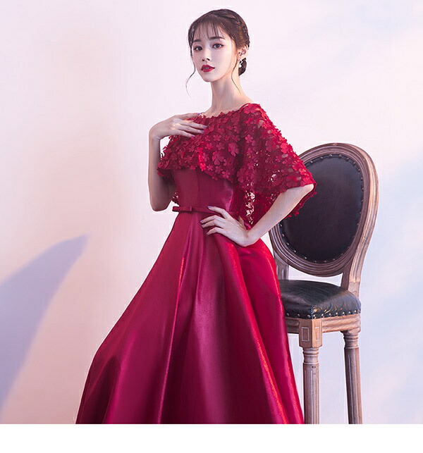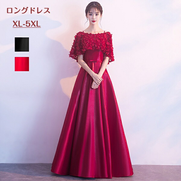 パーティードレス 演奏会用ドレス ロン レディースファッション 続々登場 S M L XL 2XL 3XL 4XL 5XL ワインレッド レッド ブラック