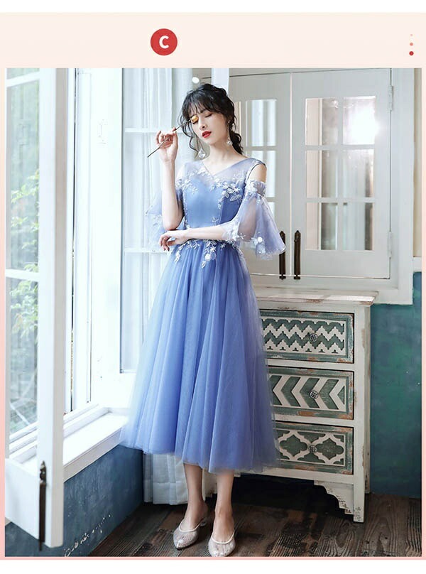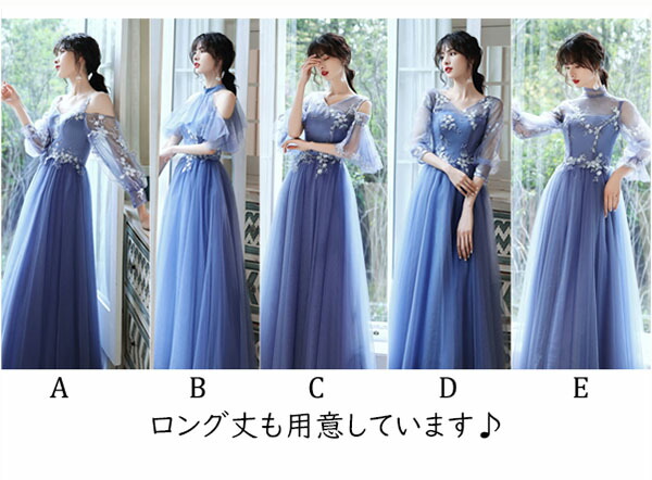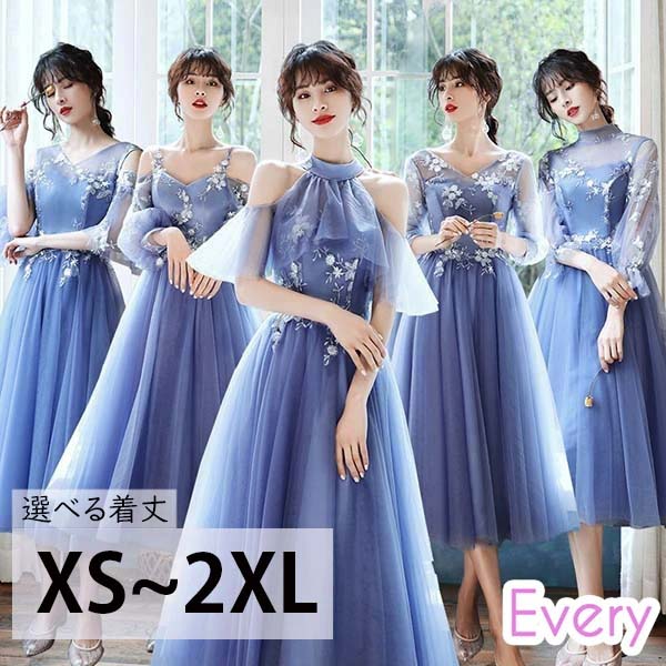 ブライズメイド ドレス ミモレ丈 ロン ドレス 期間限定割引クーポン XS S M L XL 2XL Aタイプ Bタイプ Cタイプ Dタイプ Eタイプ