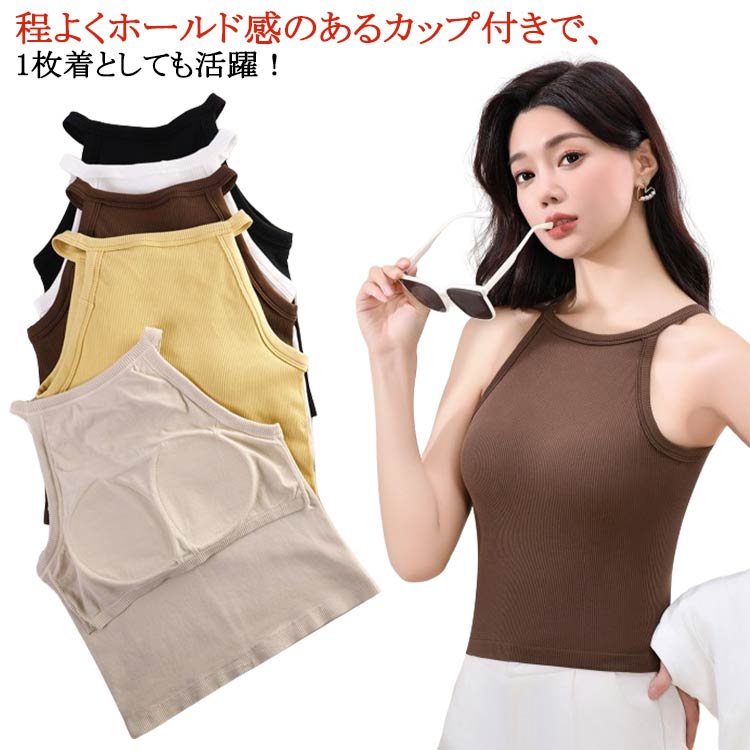 トップス カップ付き レディース ホル レディースファッション 豊富な品揃え ホワイト ブラック ベージュ コーヒー イエロー レッド