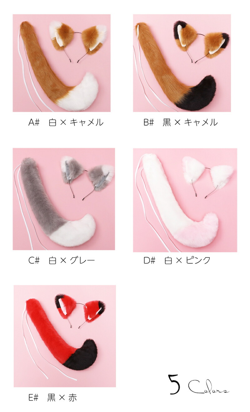 コスプレ道具 狐耳&尻尾セット キツネ コスプレ 変装 仮装 キャップ ヘッドアクセサリー 早い者勝ち!ポイントUP A# 白×キャメル B# 黒×キャメル C# 白×グレー D# 白×ピンク E# 黒×赤
