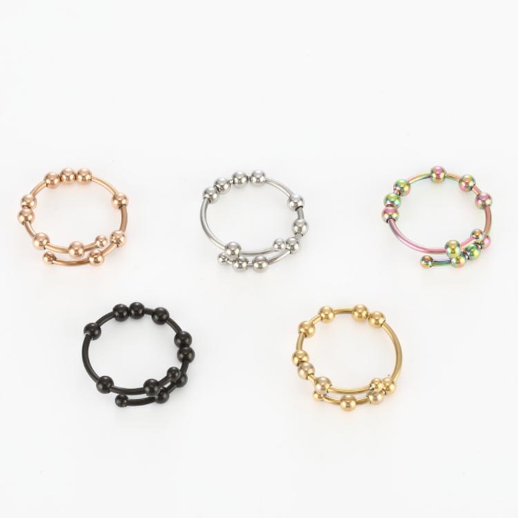ストレス解消 リング 指輪 ステンレス ジュエリー アクセサリー 豊富 シルバー ゴールド ブラック 彩色 ピンクゴールド