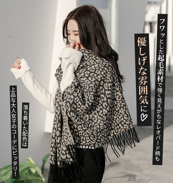 マフラー ストール 大判 厚手 レディース レオパード柄 ヒョウ柄 秋 冬 かわいい 韓国 トレンド 人気 定番 ボリューム プチプラ 安い ふわふわ プレゼント リンクコーデ お揃い ギフト