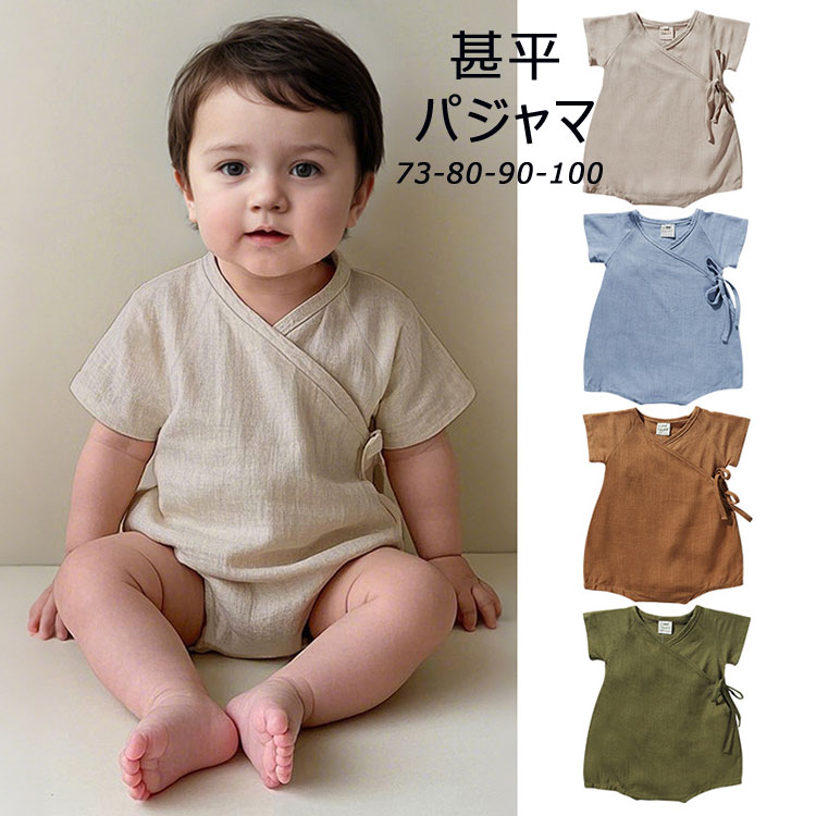 浴衣 ベビー カバーオール 半袖 ロン ブルー グリーン アンズ ブラウン 73 80 90 100