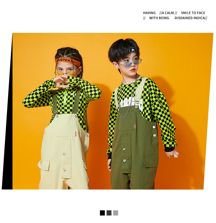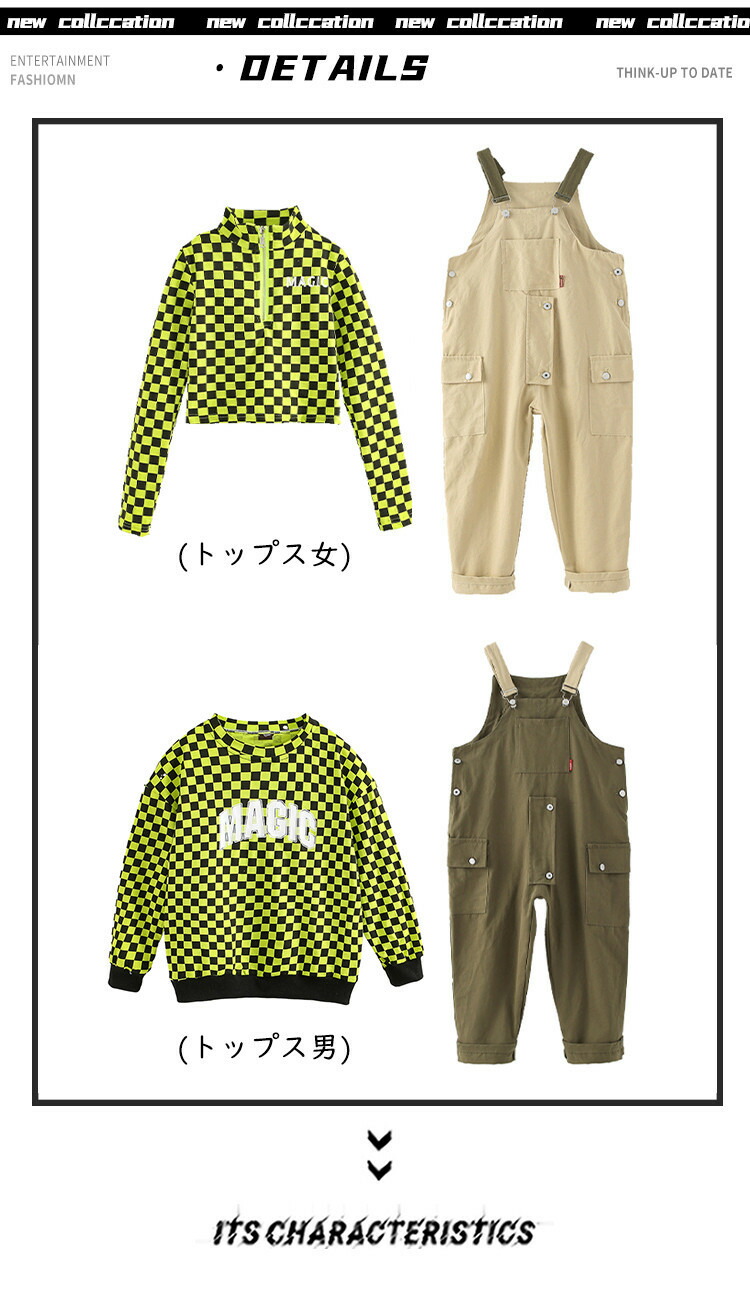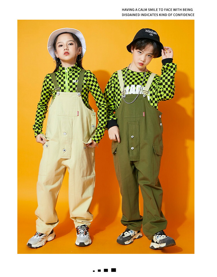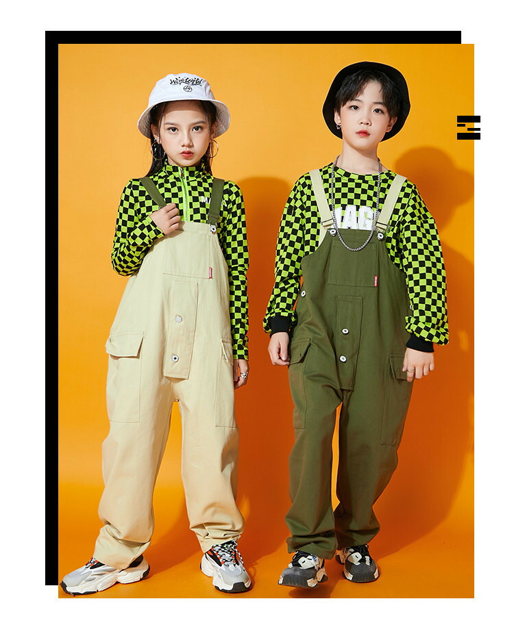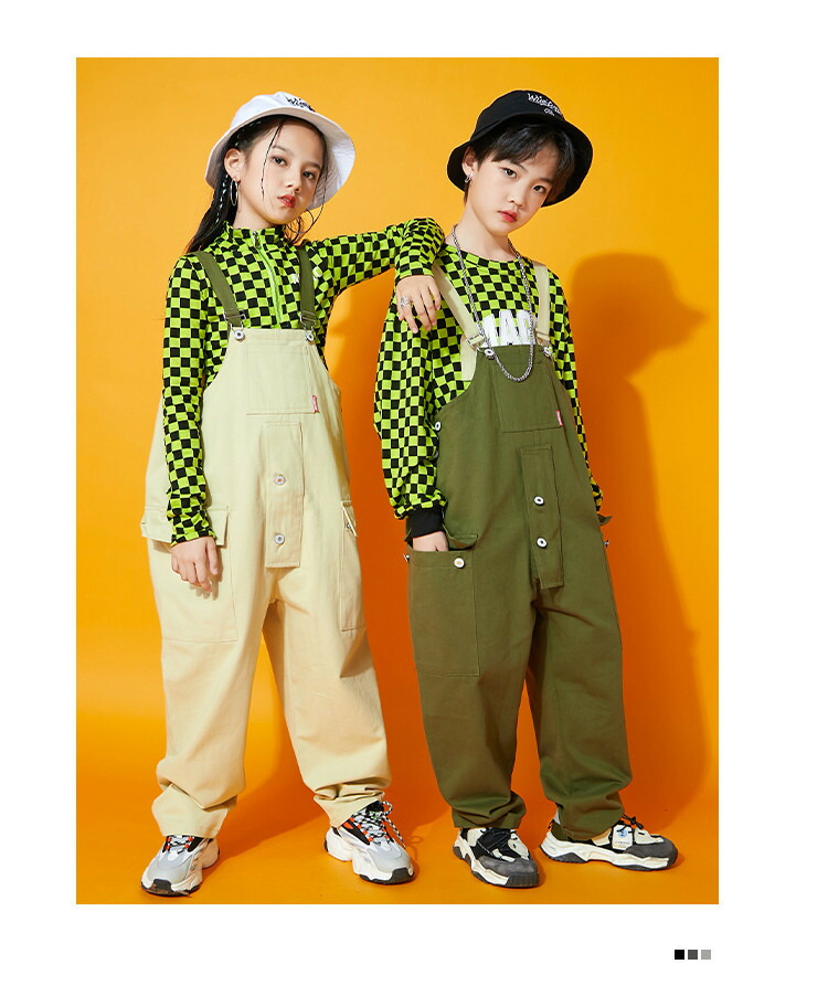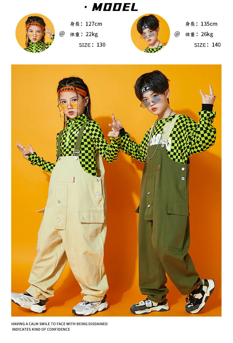 キッズダンス衣装 ヒップホップ ダンス キッズ オーバーオール 40%Off トップス(女)のみ:2970円 トップス(男)のみ:3300円 サロペット(べージュ)のみ:4840円 サロペット(グリーン)のみ:4840円 2点セット(女):6490円 2点セット(男):6820円 110cm 120cm 130cm 140cm 150cm 160cm 170cm 180cm