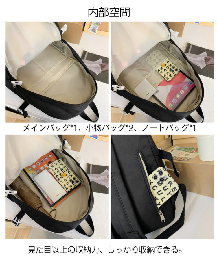 仕切りがあり、分割収納できます、見た目以上の収納力、しっかり収納できる。 A4雑誌、ipad、ノート、教科書、手帳、ファイル、スマホ、傘、化粧品、財布などを入れます。