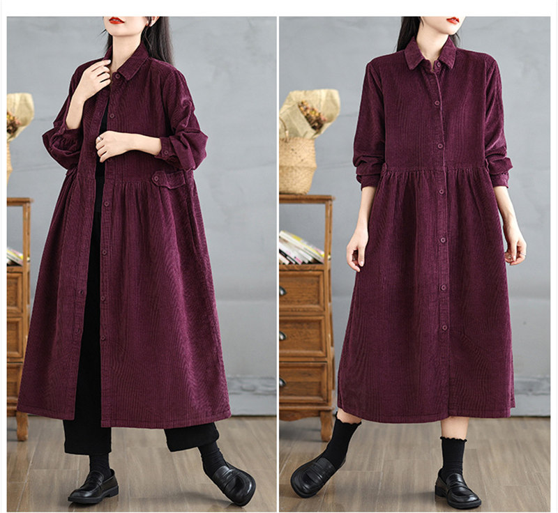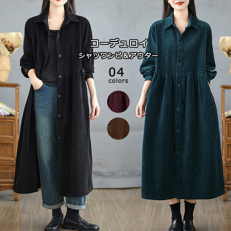 シャツワンピース マキシワンピース ワ ワイン グリーン ブラウン ブラック M L XL 2XL