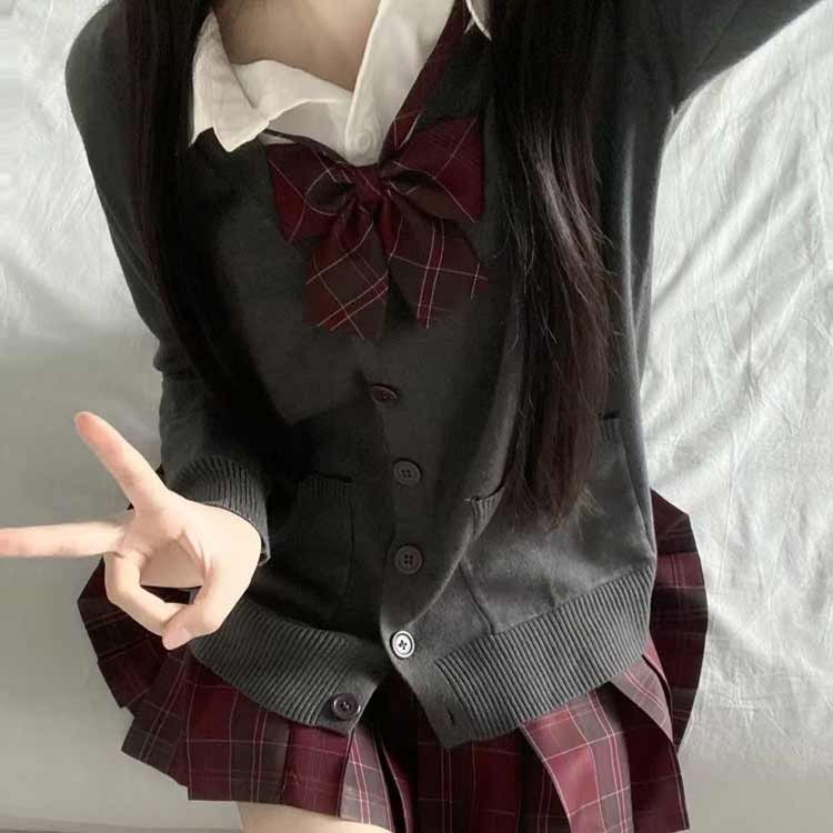 スクールカーディガン プリーツスカート 学生服 セーラー服 期間限定ポイントUP! 4点セットダークグレー1 4点セットライトグレー 4点セットピンク 4点セットダークグレー2 S M L XL 2XL