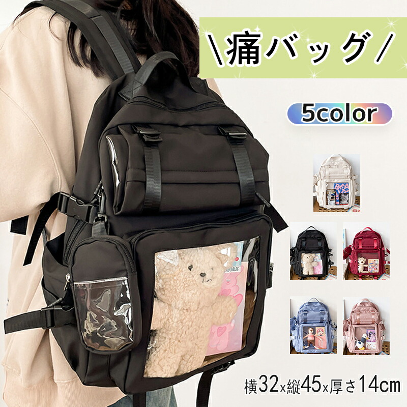 痛バッグ リュック 鞄 レディース ガールズ A4 痛バ 大容量 缶バッチ デイリー 通学 学生 ビニールバッグ ヲタバ カバン 透明バッグ 見せバッグ オタクバッグ クリアバッグ