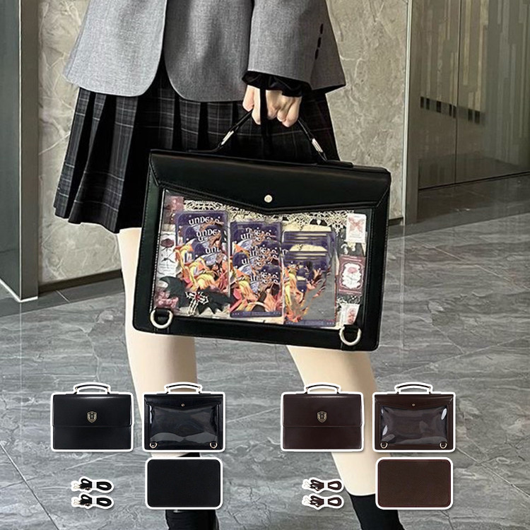 痛バッグ ショルダー 痛バ 推し活 サッチェルバッグ バッグ 推しバッグ イベント スクエアバッグ 学院風 ガールズ jk JK 制服 クリアバッグ おしゃれ 透明窓 推し活バッグ かわいい