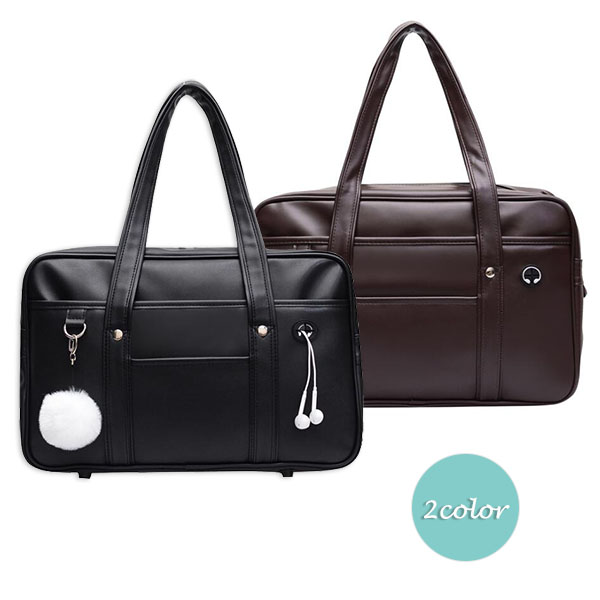 大容量 手提げ 斜めがけ ポンポン付き ショルダーバッグ ブラック jk 鞄 バッグ 学校 修学旅行 通学バッグ 鋲が付き 大容量 手提げ 鞄 中学生 ボストンバッグ カジュアル カバン