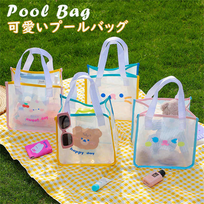 プールバッグ 女の子 中学生 可愛い 大容量 海 PVC 防水 クリア 水遊び 水泳 砂場 小学生 兎 熊 レッスンバッグ レディース 子供 韓国 軽量 シンプル 水陸両用 ショッピングバッグ 洗える