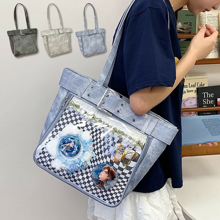 痛バッグ 痛バ トートバッグ 痛トートバッグ 痛 レディース 大容量 通学 通勤 a4 無地 シンプル クリアバッグ ビニールバッグ 透明窓 デコバッグ オタク 推し 推しバッグ 推し活 オタク活