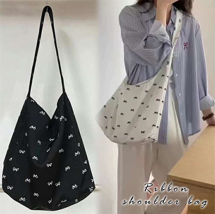リボン柄ショルダーバッグ キャンバスバッグ A4サイズ レディース トートバッグ 使いやすい ユニセックス 軽いボディバッグ バッグ 男女兼用 韓国バッグ 大容量鞄 カジュアル キャンバス おしゃれ