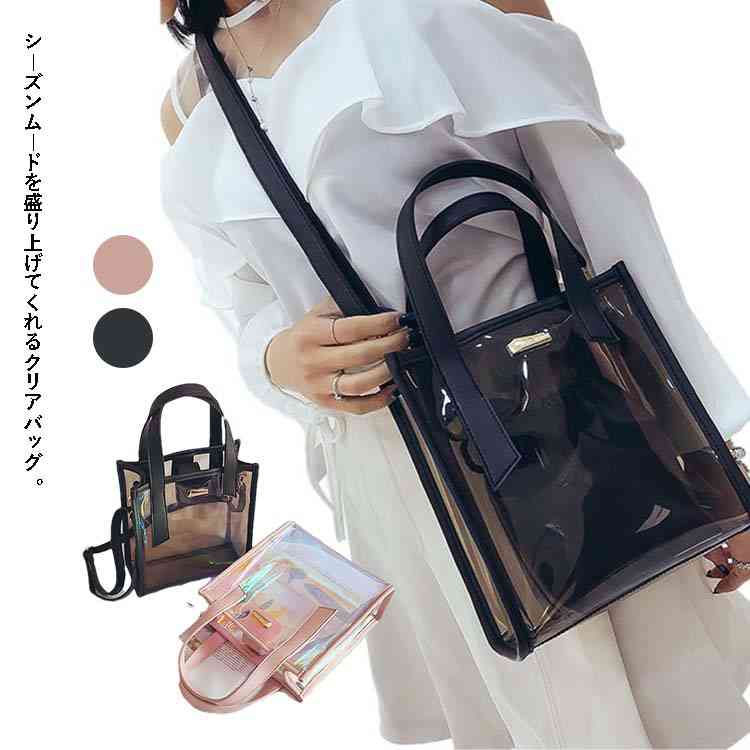 クリア バッグ 透明 ポーチ付き トートバッグ ショルダーバッグ 斜め掛け