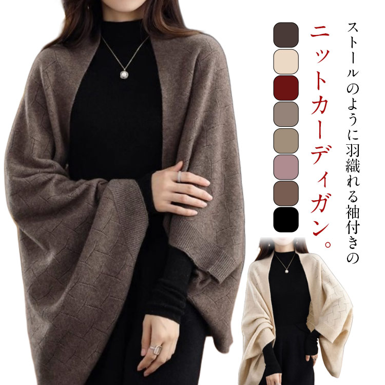 着るストール ポンチョ レディース ドルマン アウター ニット カーディガン ショール 羽織 使いやすい フォーマル 軽量 通勤 オフィス 防寒 防風 肩掛け 暖かい 無地 ロング