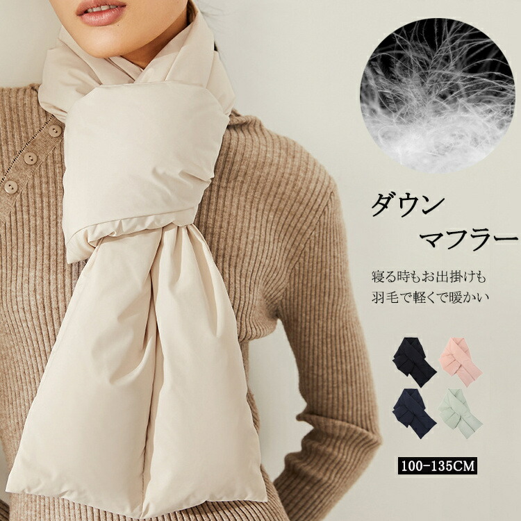 マフラー レディース 差し込み ダウンマフラー 暖かい 防寒 保温 ダウン 90% ストール 厚手 軽い あったか ふんわり ティペット ロングマフラー 脱着やすい 寒さ対策 ネックウォーマ 左右交差