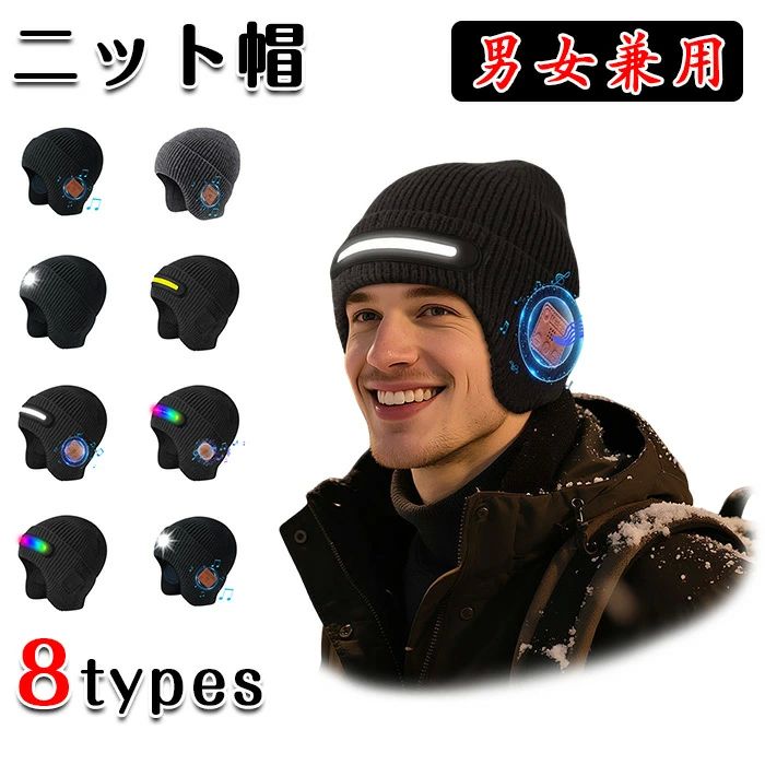 レディース US 軽くて暖かい 大きいサイズ ワイヤレスBluetooth機能 裏起毛 ニット帽 音楽帽 メンズ 耳当て付き帽子 8types LED