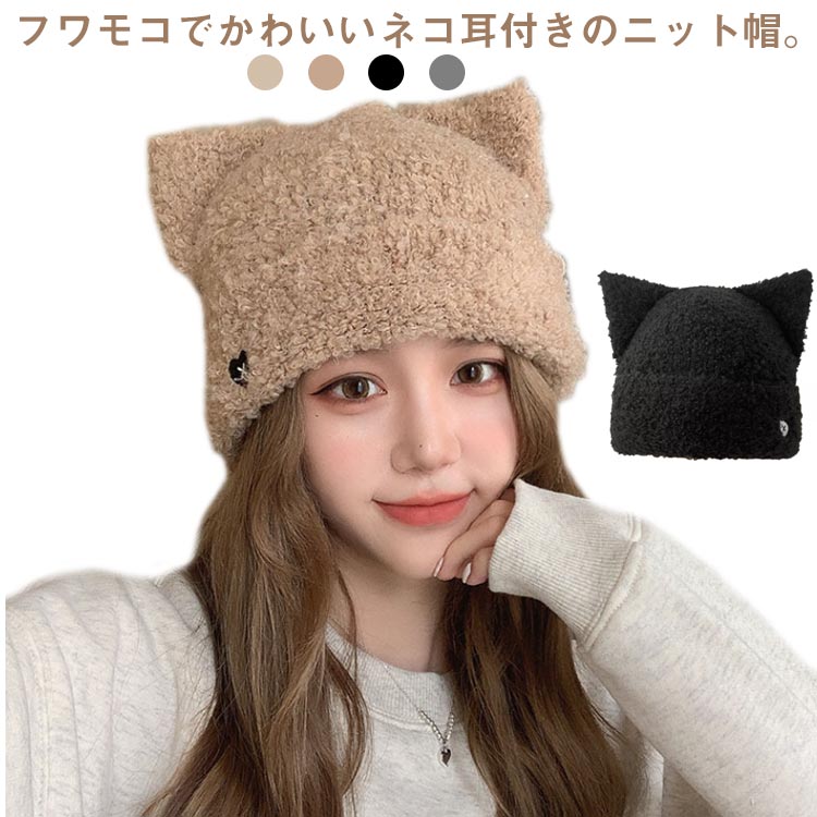 ニット帽 猫耳 帽子 ねこ耳 ニット ニット帽子 レディース もこもこ 暖かい ニット帽 耳付き