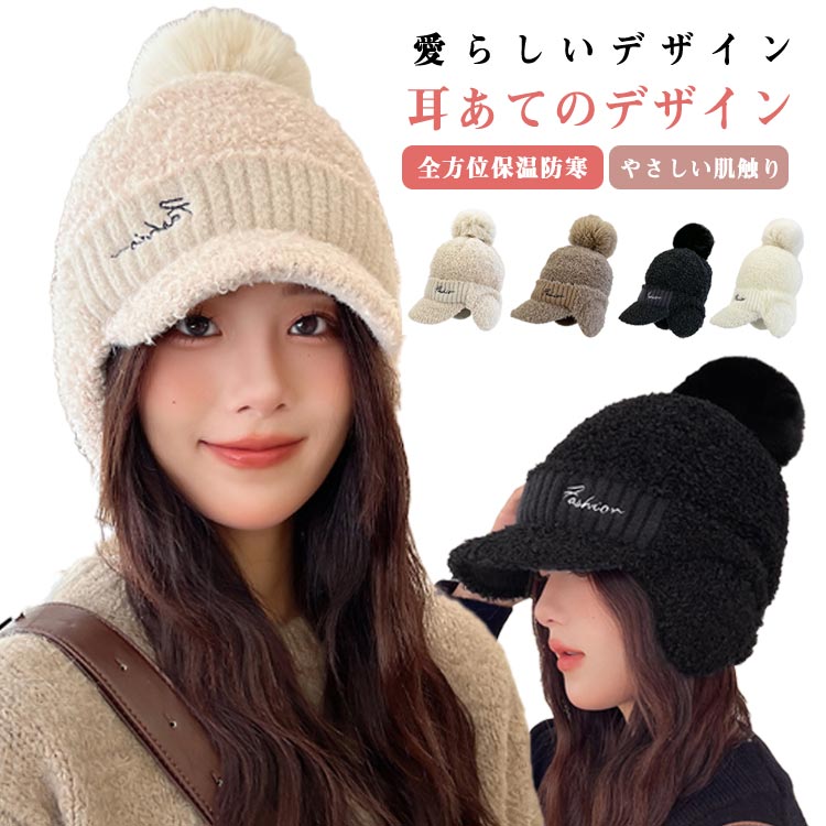 ニット帽 耳あて レディース ポンポン 帽子 もこもこ あったかい 防寒帽子 秋冬 防寒 ボア 冬用ハット 男女兼用 耳当て付き ニットキャップ 無地 柔らかい 暖かい 防風 保温 帽 かわいい