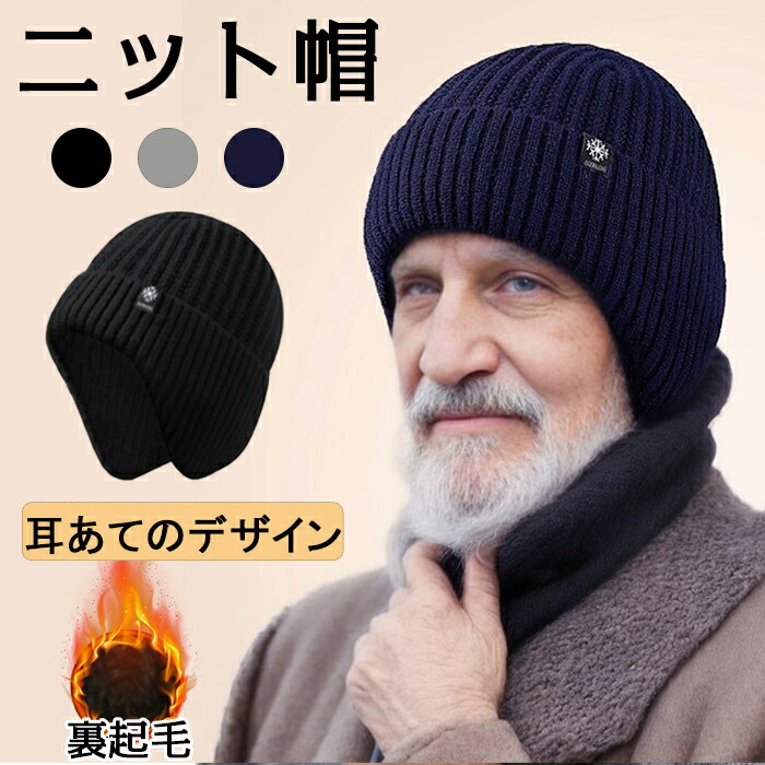 ニット帽 メンズ 耳あて ニットキャップ 防寒 裏起毛 秋冬 シニア ハット 帽子 冬用 裏ボア 厚手 あったか 耳あて付き ニット 暖かい ふわふわ スキー スノボ スポーツ 高齢者 お アウトドア