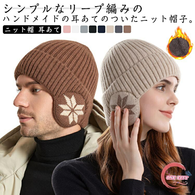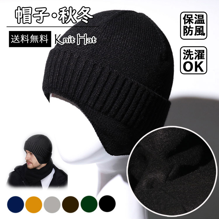 帽子旅行アウトドア冬防寒保温厚手耳あて付メンズ男旅男性大人大人用シンプルニットニット帽キャップモダン外出秋ブラックネイビーキャメルグリーンブラウングレー